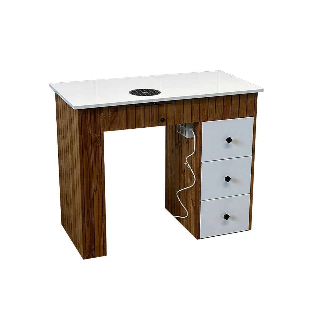 سوراخ برای مدیریت کابل: سوراخی در وسط میز برای مدیریت کابلها وجود دارد، که میتواند برای اتصال ابزارهای الکتریکی مانند دستگاههای خشککن ناخن یا لامپهای UV مفید باشد.